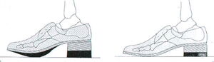 Das obere Sprunggelenk wird durch den Abrollabsatz wesentlich beeinträchtigt und der Auftritt und die Abrollung erleichtert. Der Bewegungswinkel wird reduziert und die Stauchwirkung vermindert. Damit eine bessere Abrollung des Fußes. Bei der Bewertung von fußgerechtem Schuhwerk muss man darauf achten, dass der Schuhe den Fuß in seine natürlichen Funktionen nicht einschränkt, sondern form- und funktionsgerecht sein soll. Achten Sie bei geschlossenen Schuhe für den notwendigen Luftaustausch, dass die zunächst gasförmigen Ausdünstungen des Fußes sich nicht gleich als Schweiß niederschlagen. Durch die Bewegungen des Fußes, insbesondere der Zehen im Schuh, wir der Luftaustausch gefördert. Ein Wechselspiel der Schuhe mehrmals am Tag ist notwendig, so dass Sie ihre Fußgesundheit erhalten und weiterhin nach dem Motto „So weit die Füße tragen" leben können.